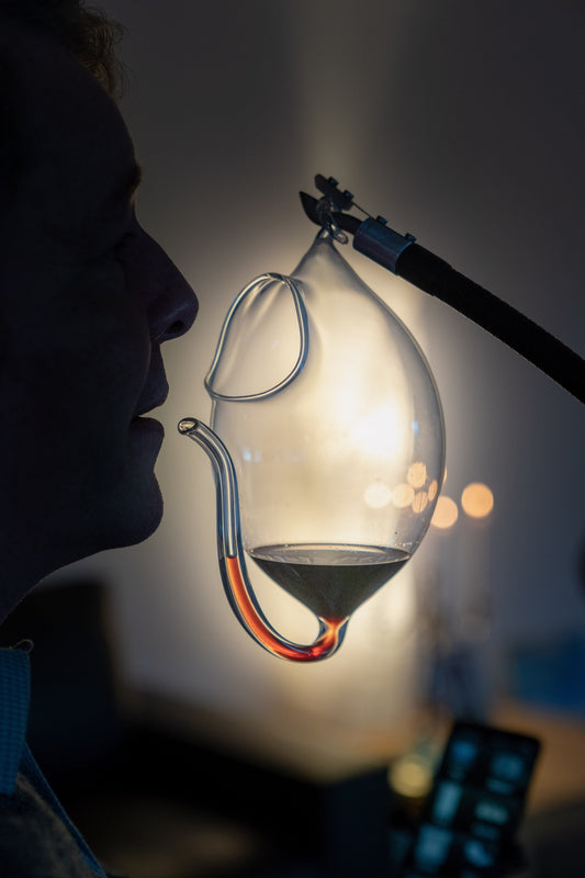 Das Hands-Free Weinglas wurde in enger Zusammenarbeit mit Reto Zünd von der Event-Glasbläserei in der Twannbachschlucht am Bielersee entwickelt.